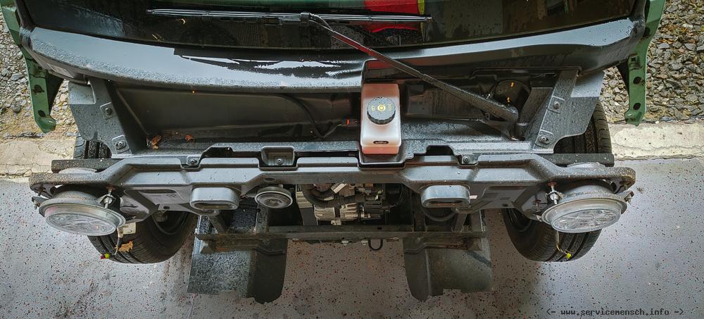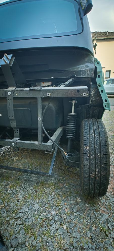 Grundlegend habe ich zwei Konzepte angedacht um im Winter zusätzlich Heizen zu können: Eine Diesel-Stamdheitzung, verbaut im ungenutzten Bereich hinter der hinteren Karosserie. Die warme Luft hätte ich dann einerseits in das Akkugehäuse unter dem Fahrzeug geleitet um die Fahrbatterie etwas mit zu heizen, andererseits hätte ich über die Belüftungsöffnung unter dem Lenkrad den Innenraum erhitzt. Aber dies wäre schon ein größerer Eingriff in das Fahrzeug gewesen.