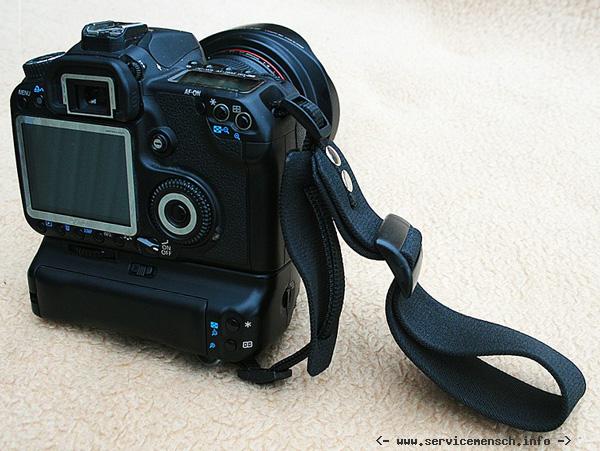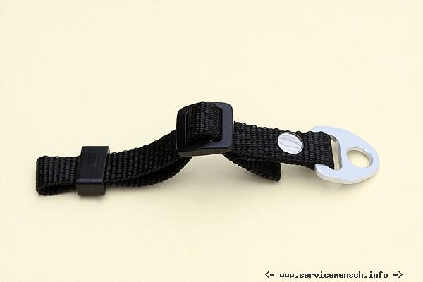 Der FangriemenAuch ein zusätzlicher Fangriemen für das gute Gewissen ist verfügbar. Dieser hat auf der einen Seite eine Schlaufe (für an die original Kameragurtaufnahme) und auf der anderen einen kleinen Karabiner.