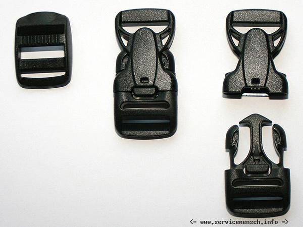 Der HuGu mit Steckschließer ermöglicht zusätzlich zur Längenverstellung noch das öffnen des Gurts nach betätigen einer Sicherungstaste.
