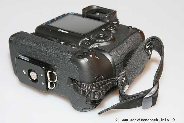 Drei in einem - Der KombigurtDer Kombigurt ist Handschlaufe, Handgelenkschlaufe und Fangriemen in einem. Er wird an der Gurtöse der Kamera sowie am Batteriegriff (soweit vorhanden) oder an der Befestigungsschraube des HuGus angebracht.