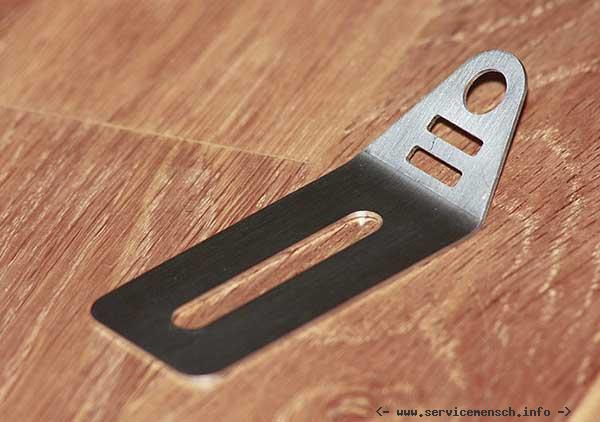 Die UniversalplatteDiese nur 1 mm dicke Platte aus gelasertem V2A (Edelstahl) passt unter so ziemlich jede Schnellwechselplatte der Stativköpfe! Somit kann die originale Wechselplatte immer an der Kamera montiert bleiben und dennoch kann der Gurt bei Bedarf montiert werden. Die Platte ist poliert und mit einem Langloch zur flexiblen Montage versehen. Sie besitzt einen Steg für eine Handschlaufe sowei ein Befestigungsloch für den Karabiener des HuGus.